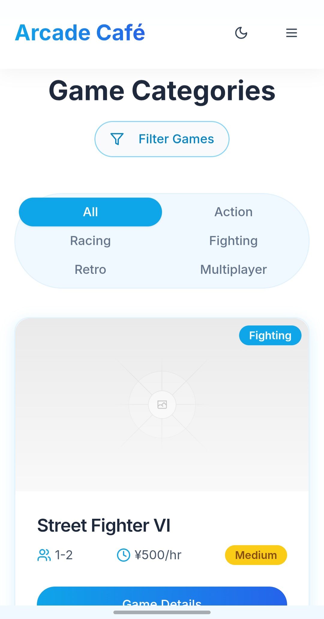 A stylish UI design project inspired by Japanese arcade culture, blending an arcade game shop theme with a café atmosphere. The interface emphasizes easy navigation, vibrant colors, and appealing visuals that reflect Japanese pop culture. It aims to create an immersive and enjoyable user experience for fans of arcade gaming and café environments.