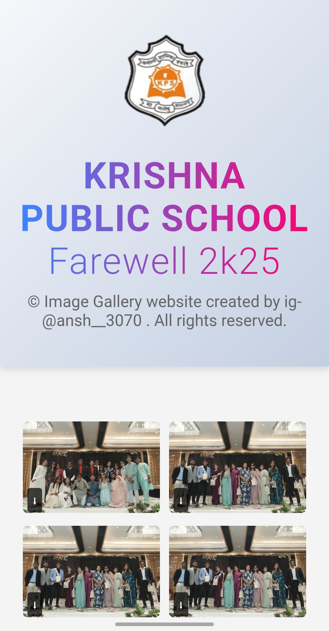 This project is a dedicated website designed to streamline the sharing of farewell event data, photos, and memories among students and teachers. It features an intuitive interface that allows users to upload, browse, and download farewell-related content effortlessly. The site promotes easy collaboration and preserves precious moments from school farewells with a clean and responsive design.